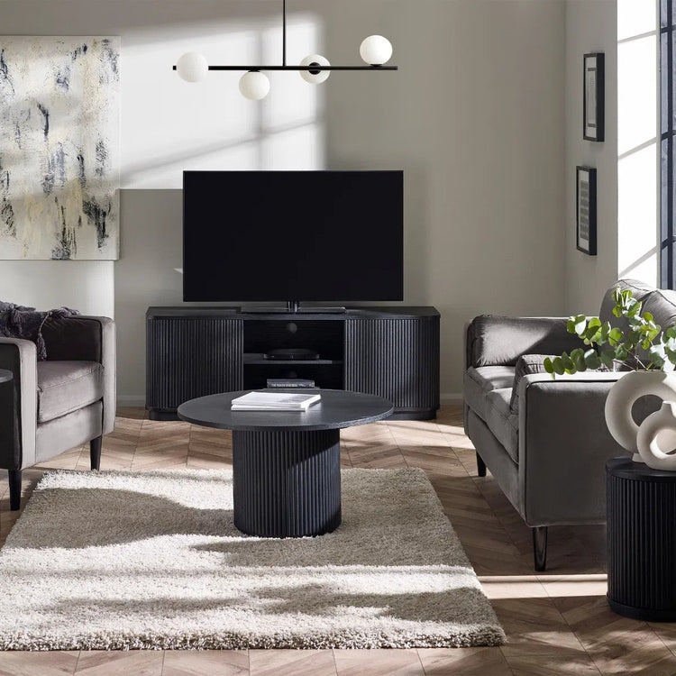 Louis Fluted Stone Top Coffee Table With 2 Drawers - Black