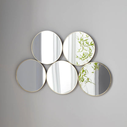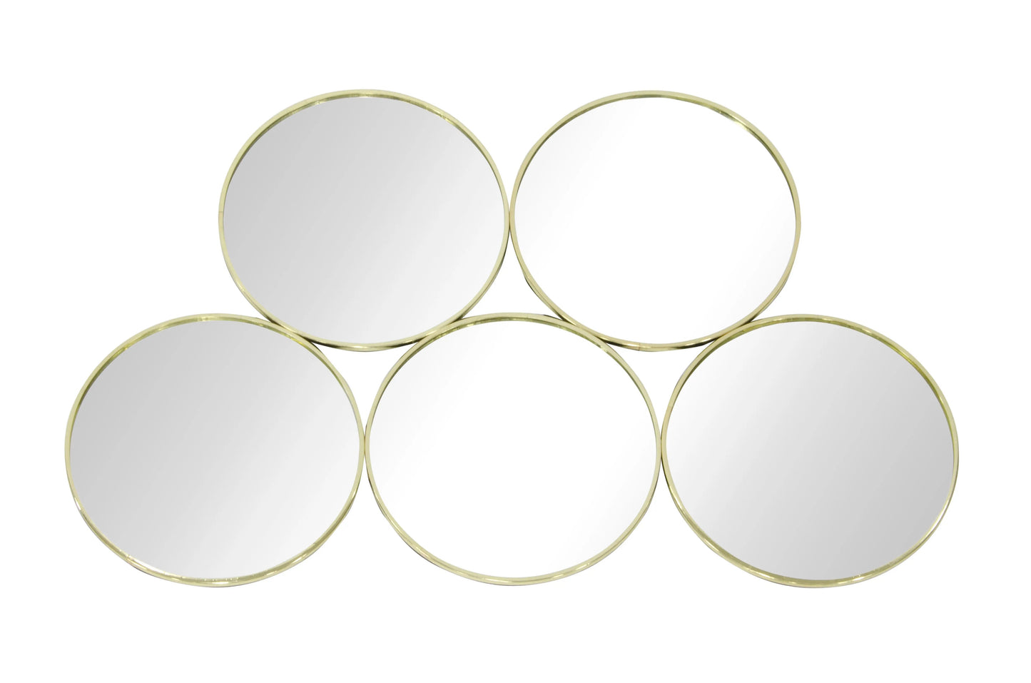Transform your living space with the exquisite Quality 5 Circles Mirror. This stunning addition effortlessly adds elegance and sophistication to any room. The golden metal frame expertly holds five perfectly rounded mirrors, creating a captivating play of reflections and adding a new dimension to your space.