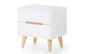 A stylish, retro-inspired bedside cabinet with two drawers in an immaculate matt white lacquered finish, with complementary tapered oak finish legs and recessed handles to provide easy opening. The sleek Scandinavian feel fits beautifully with any décor.