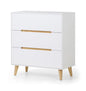 A stylish, retro-inspired chest with three large drawers in an immaculate matt white lacquered finish, with complementary tapered oak finish legs and recessed handles to provide easy opening. The sleek Scandinavian feel fits beautifully with any décor.