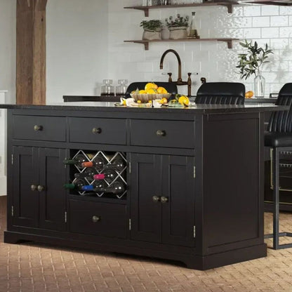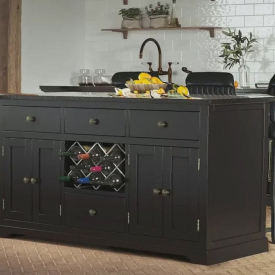 This stylish and multifunctional kitchen island has a black-painted base and black granite worktop. Ideal for storage, food preparation, casual dining or a central point for socialising with family and guests.