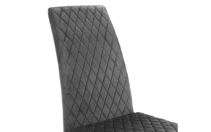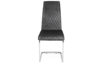 The modern Calabria Dining Chairs offer an elegant touch to any dining area. Upholstered in a choice of grey or blue-rich velvet, with delicate diamond stitching upon a high, curved backrest for added comfort. Finished with a chrome-plated cantilever frame, this dining chair is perfect for a wide range of Julian Bowen dining tables.