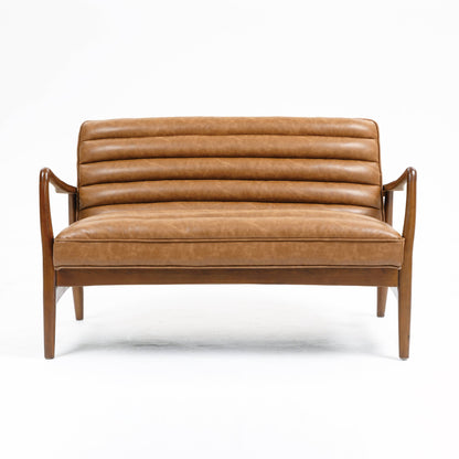 With its bold mid-century influence and timeless appeal, the club leather-effect tan bench makes a striking addition to any interior. Upholstered in smooth tan leather-effect fabric, the bench features horizontal channelling across the seat and backrest for a refined, structured look.