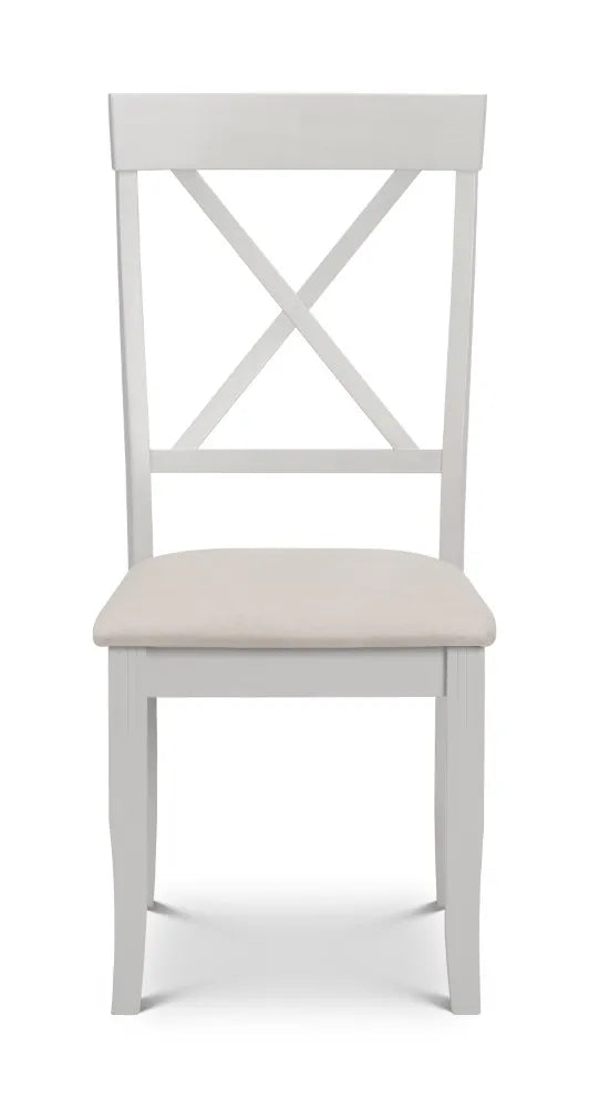 Get comfy with the Davenport dining chair. Crafted from solid rubberwood and an ivory faux suede upholstered seat, padded for you to reach maximum comfort, this is the ideal dining chair to please your dinner guests. In an elegant grey lacquered finish, suitable for any dining room decor. A wide range of coordinating items are available in the Julian Bowen Davenport collection.