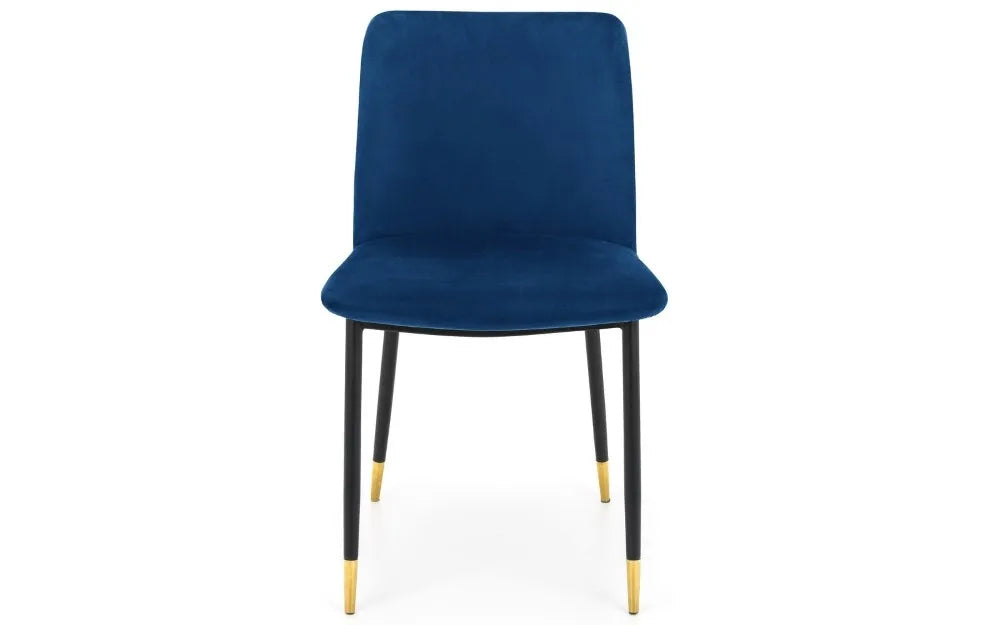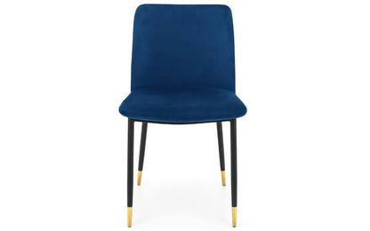 The Delaunay Dining Chair offers a simple, modern design finished in a Blue Velvet with black legs and brushed brass tips for an elegant finish. Perfect for adding a touch of glamour to your living room or kitchen space, this elegant chair will perfectly match a range of dining tables.