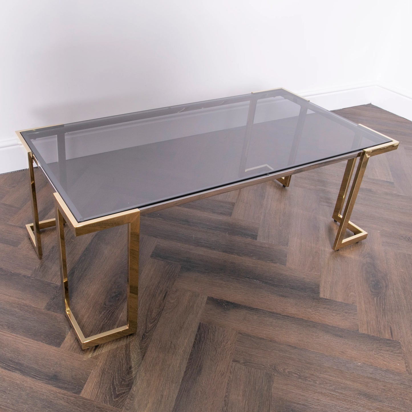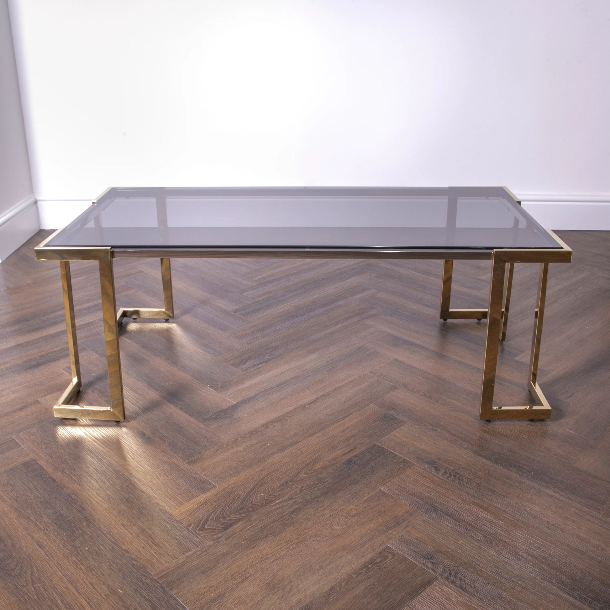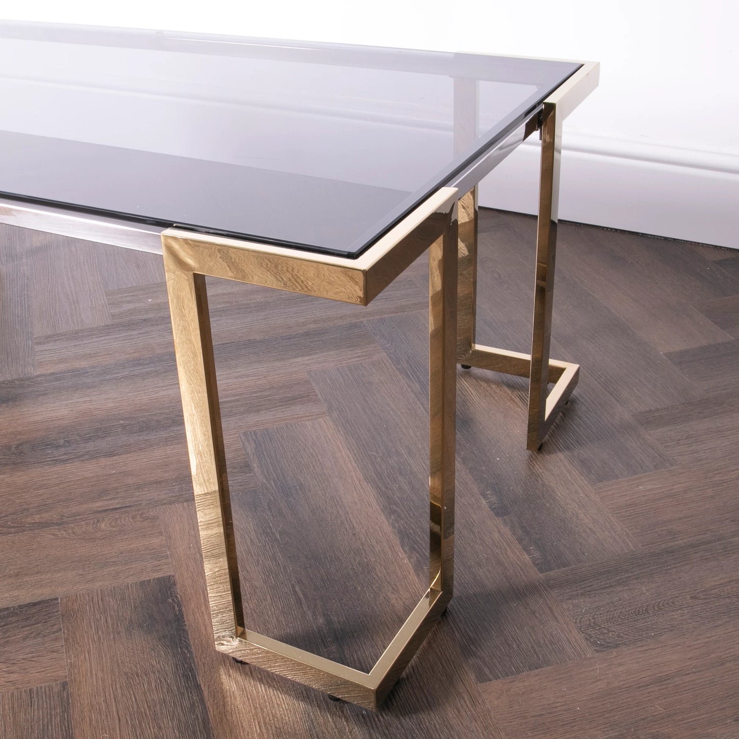 The Domus Coffee Table would make the perfect addition to any living space, it's simple and elegant design is made up of a minimal gold frame and smoked glass top. This coffee table gives a clean and modern look.