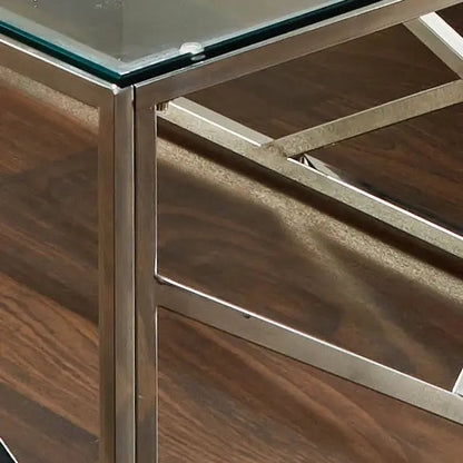 This geometric pattern coffee table is the perfect piece to add to your modern home. Made from stainless steel and finished with 8mm thick glass.