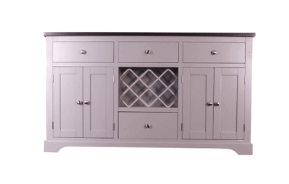 • In the middle of the unit, two sturdy painted metal wine racks will hold a total of 16 of your favourite bottles (8 bottles on each side)