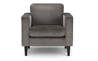 The Hayward Armchair will add a modern touch to any home. Finished in an elegant and luxurious deep pile of grey velvet fabric, this armchair features a padded frame allowing you to relax in style. Accompanied by two leg colour options - black or light oak, this armchair is the perfect design for a range of home decor. Part of the Hayward Upholstery Range from Julian Bowen.