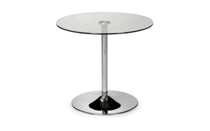 This Kudos Glass Pedestal Table has a contemporary chrome and glass finish that is perfect for your dining room or as a modern kitchen diner. The pedestal table is easy to pick up and move around the room and it can comfortably seat 4 people. Perfect for a cosy and casual dinner with friends.
