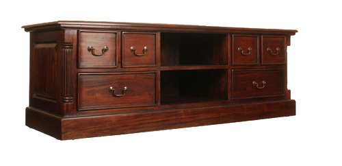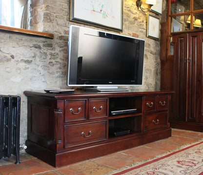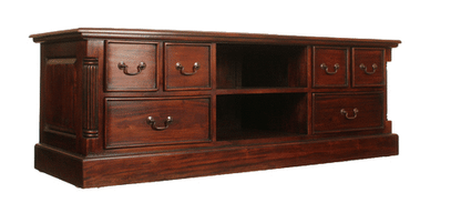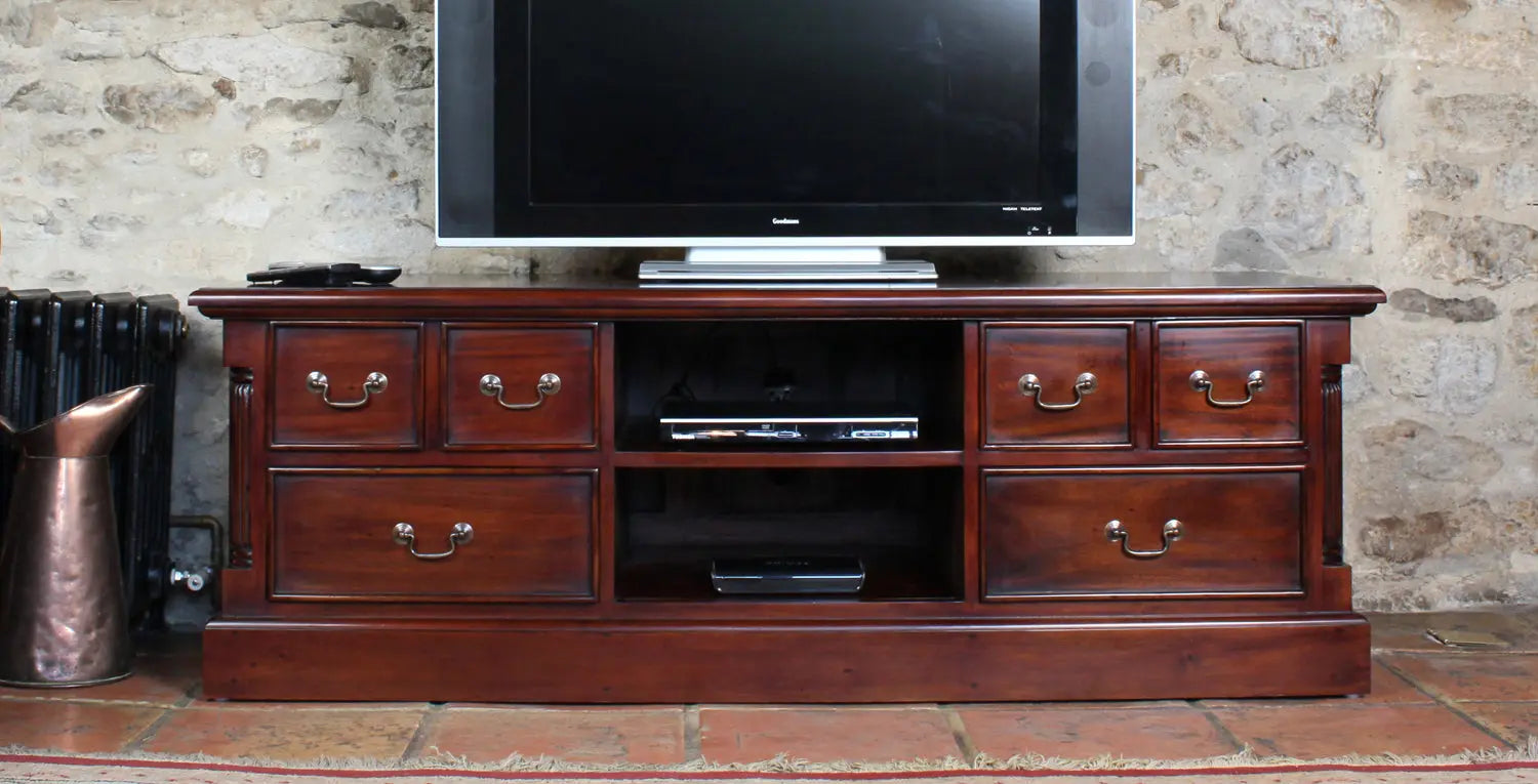 Classic designs with a contemporary edge to suit any home. This television cabinet is designed to hold large (LCD/ Plasma or LED) televisions up to 72" wide. Includes beautiful antiqued brass drop handles.