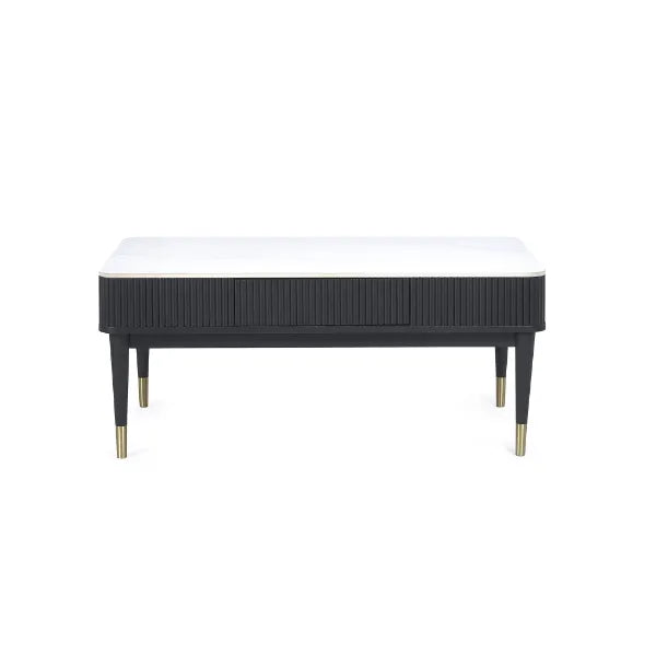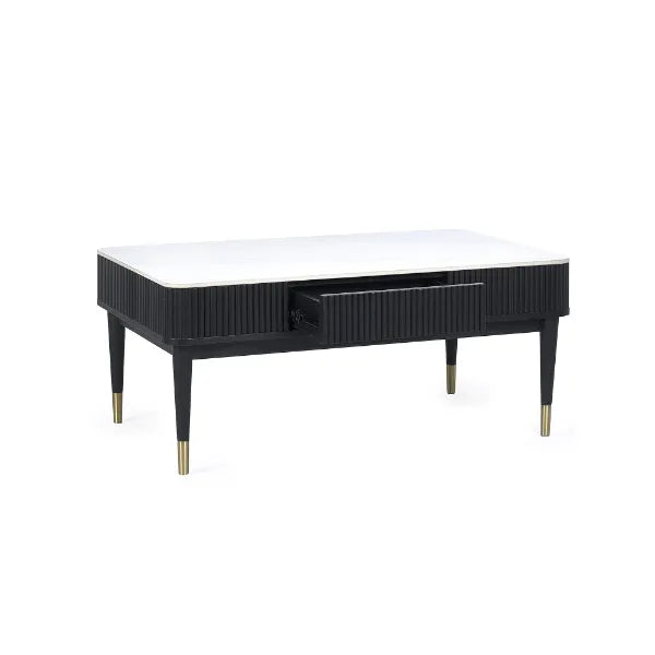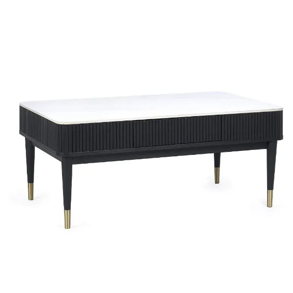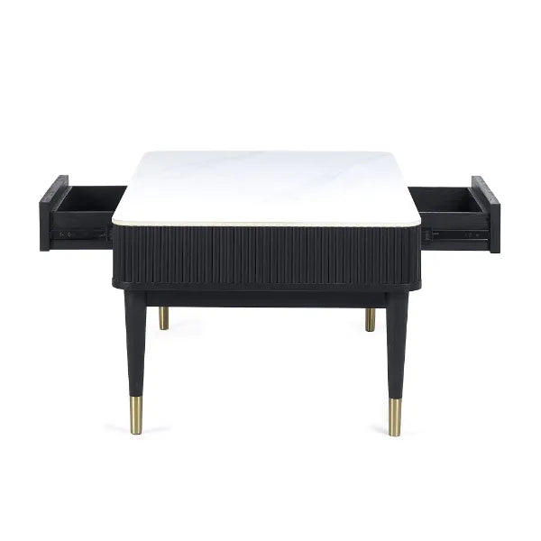 Louis Fluted Stone Top Coffee Table With 2 Drawers - Black