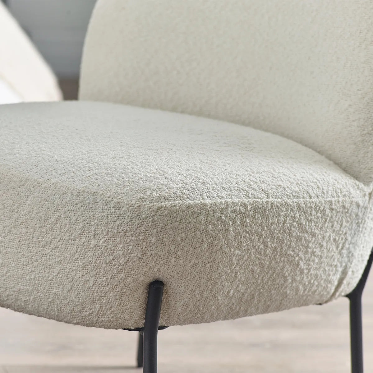 - Upholstered in a beautiful, on trend ivory boucle fabric.