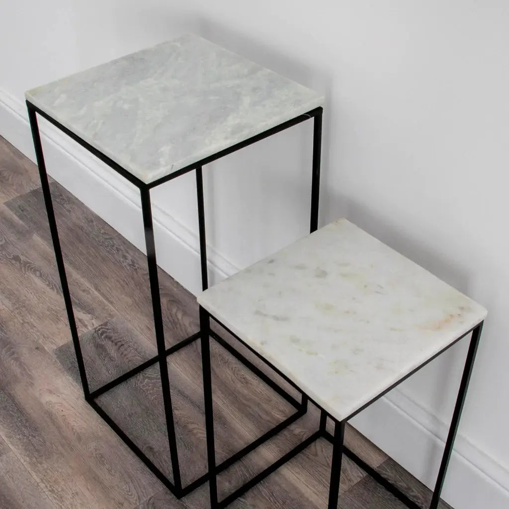 With a hint of art deco, these beautiful marble display tables will really make a statement in your home. The design of this set of tables means they fit snugly inside each other making them a great space saver.