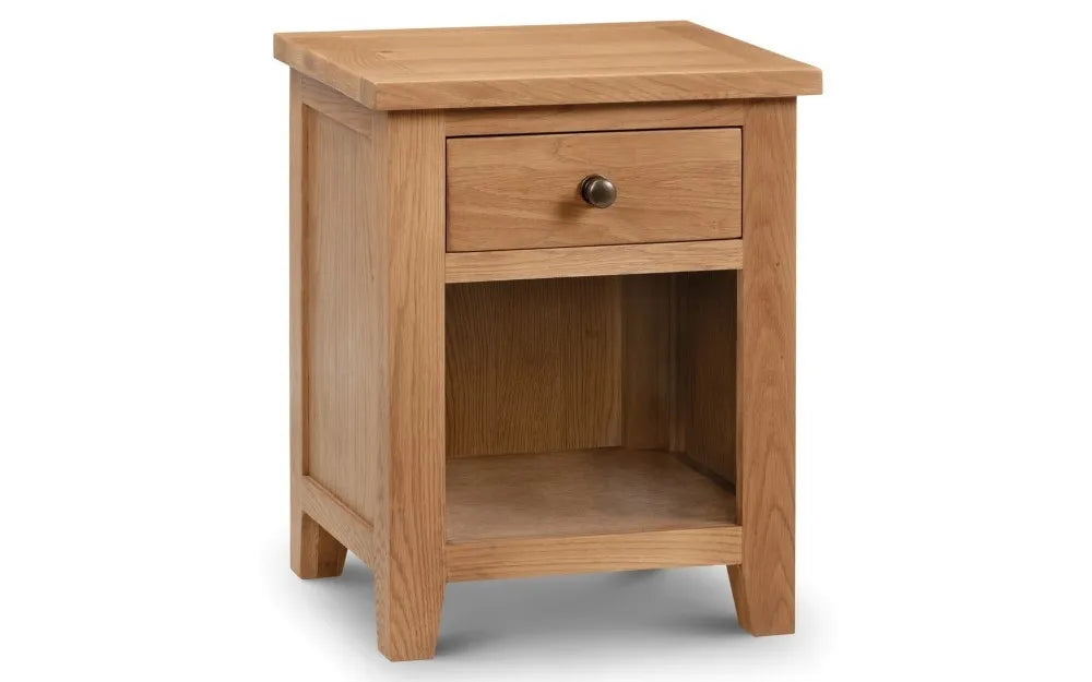 Marlborough is a bedroom range with a classic and timeless design, beautifully constructed using the finest White Oak and Oak Veneers and which complements both traditional and contemporary decor beautifully. The Marlborough Oak 1 Drawer Bedside has a 30mm chunky top, clean lines and a sumptuous waxed finish. Drawers are constructed with Dovetail Joints.