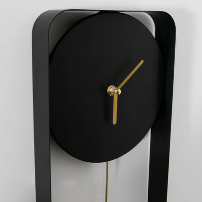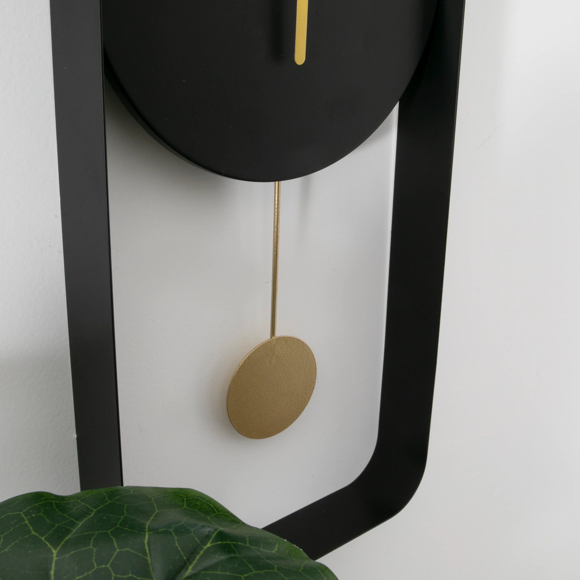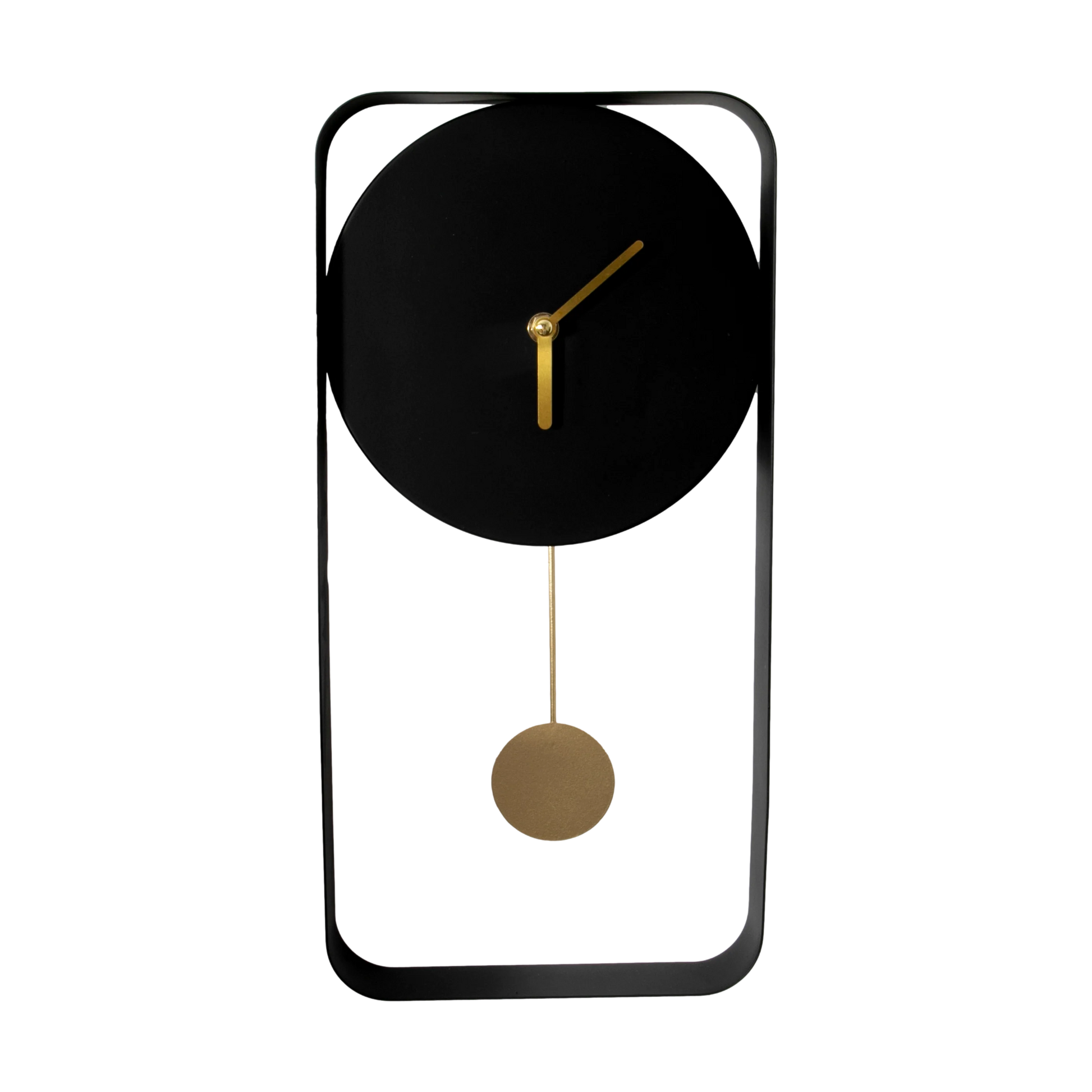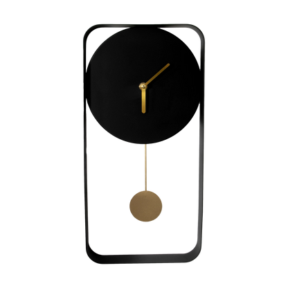 Our unique pendulum clock is perfect for adding a stylish touch to a space, this design comes in a matte black with gold accents. This minimalist design will look great in a variety of settings.
