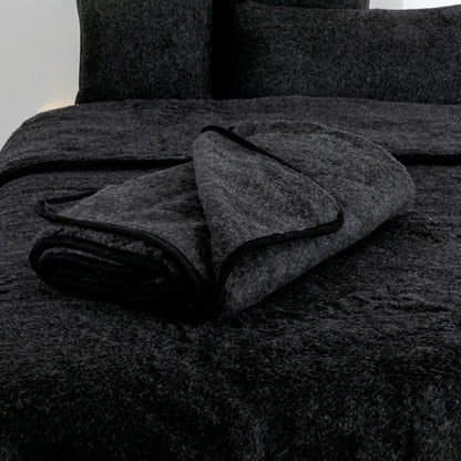 This Black Merino Wool blanket will be your cosy companion throughout the colder months but don't forget that Merino releases heat when you get too warm as well. Its deep black shade will work with most colour schemes, use it as a blanket or throw.