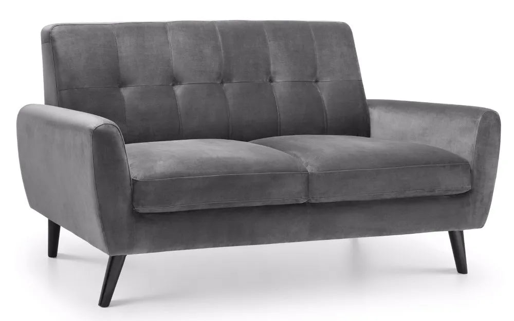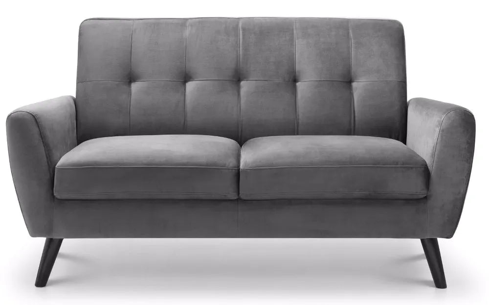 The Monza Two-Seater Sofa is compact and stylish with retro Scandinavian design influences. It is impeccably tailored in a smart, dark grey velvet fabric. Monza has a seat that is deeper than most similarly sized sofas and is consequently incredibly comfortable. Its clean lines and slick design make it a real focal point for any modern living space. Part of the wider Monza upholstery range from Julian Bowen.