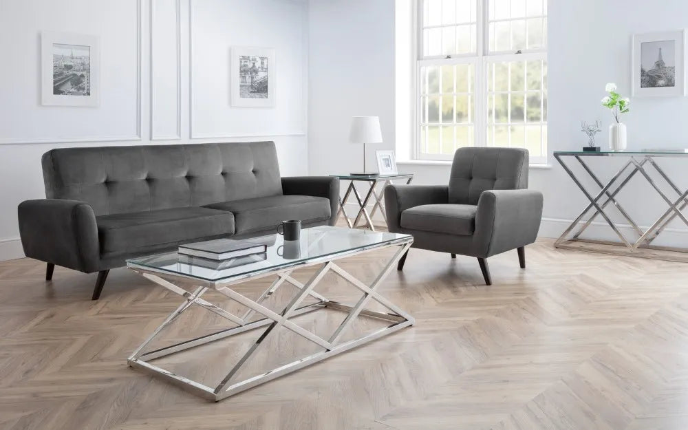 The Monza Three-Seater Sofa is compact and stylish with retro Scandinavian design influences. It is impeccably tailored in a smart, dark grey velvet fabric. Monza has a seat that is deeper than most similarly sized sofas and is consequently incredibly comfortable. Its clean lines and slick design make it a real focal point for any modern living space. Part of the wider Monza upholstery range from Julian Bowen.