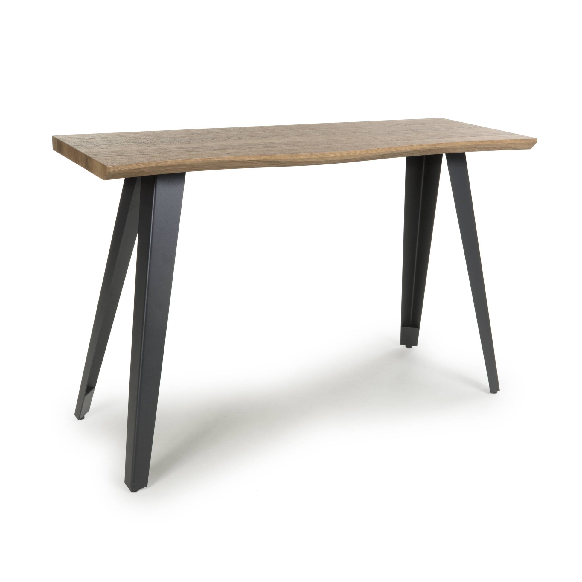 The Nassau Natural Curved Console Table perfectly merges industrial robustness with Scandinavian elegance, making it a versatile addition to any hallway or living area. Its rectangular top features a distinctive bevelled wavy cutout edge on both sides, crafted from a durable, stain-resistant wood-effect surface that measures 32mm thick.