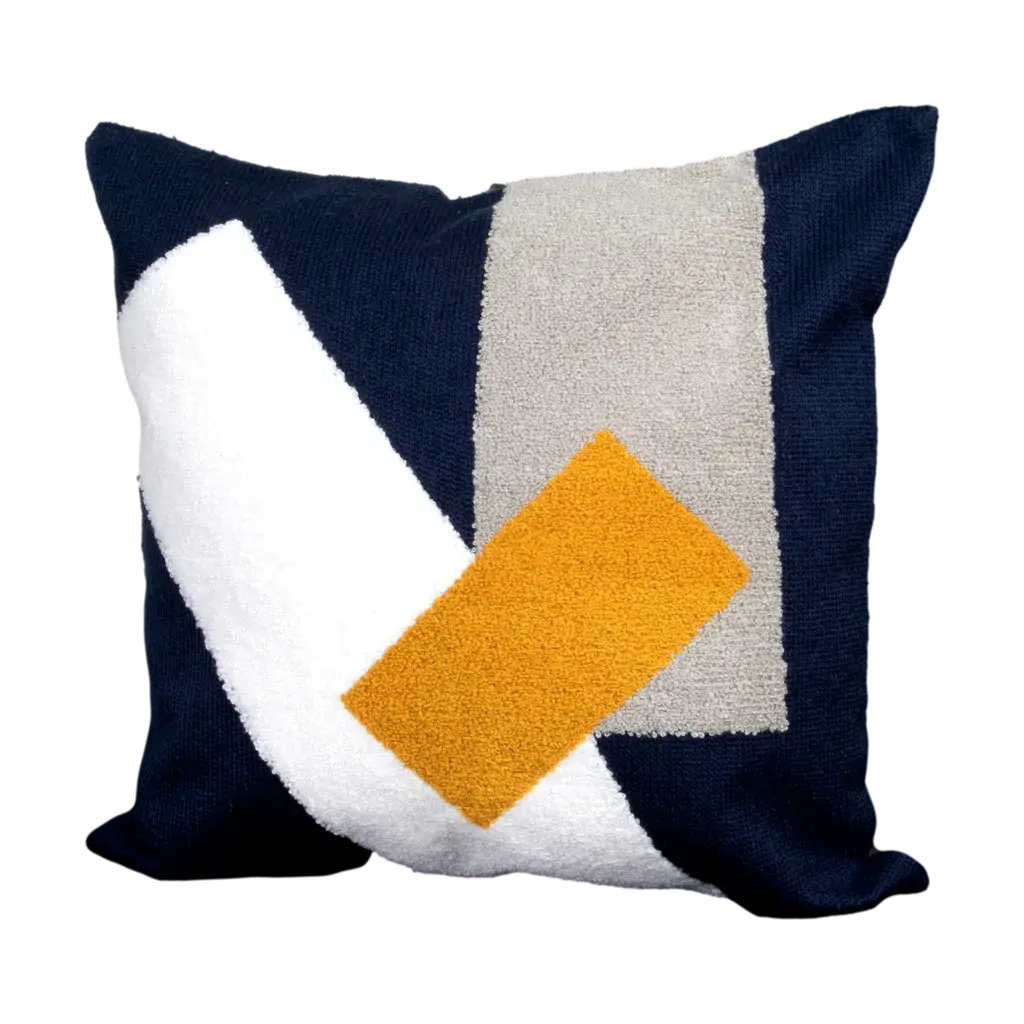 As part of our abstract cushion collection, we have added this navy blue option that draws your eye with a touch of yellow. The cushion front is embroidered and has a zip closure.
