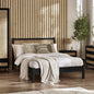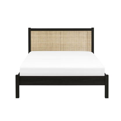 - Elegant design with intricate woven rattan detailing on the headboard.