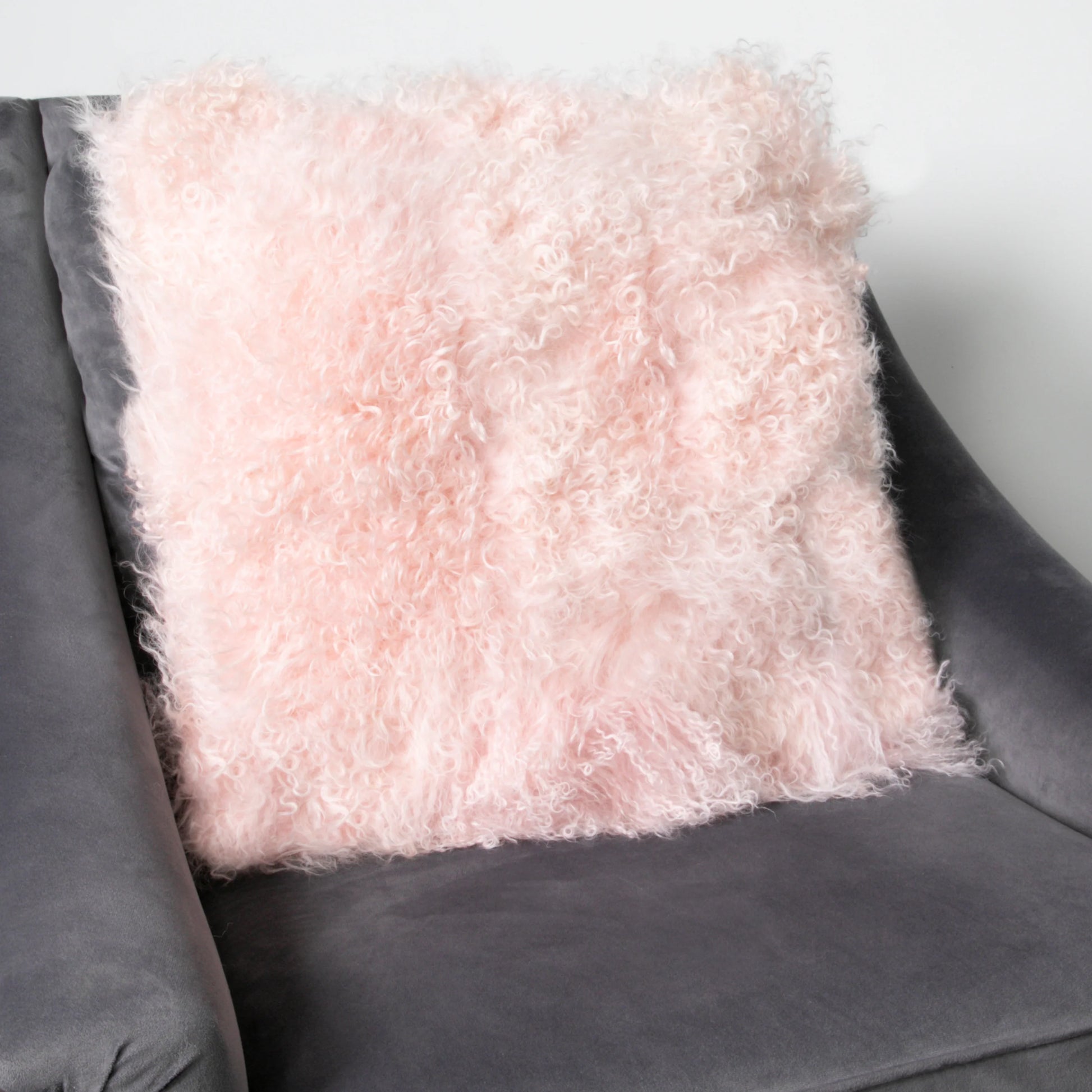 Pink Curly Sheepskin Cushion 45 x 45cm