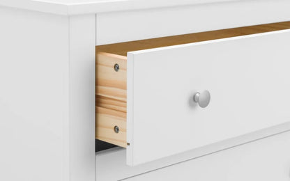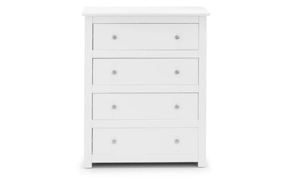 Boasting clean, simple lines the Radley 4 drawer chest is perfectly suited for both modern or traditional styles. Featuring four generously sized drawers to store away bulkier clothing. Finished in a surf white lacquer, with delicate silver handles, the Radley Bedroom Collection is perfect for adult and kids bedrooms.