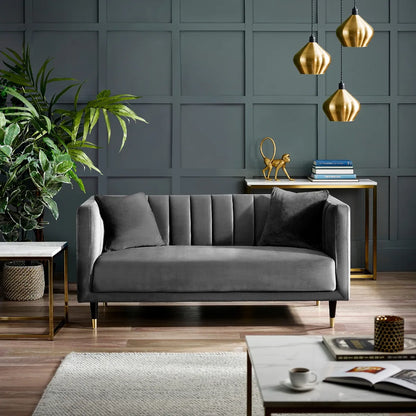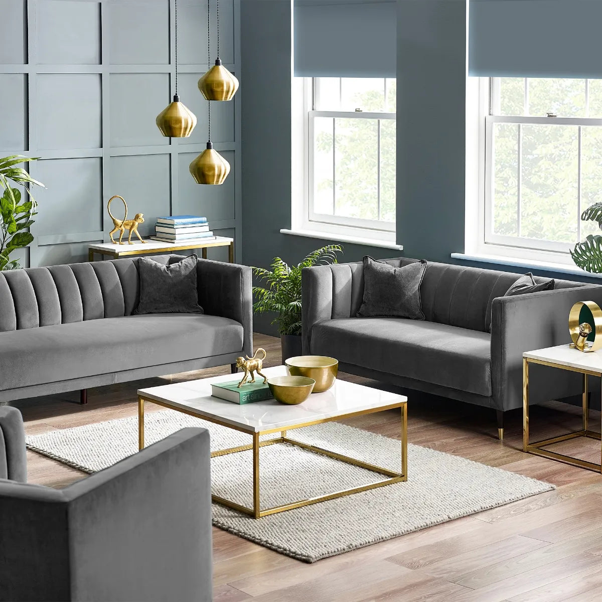 The Salma Sofa collection is a stylish and compact suite with a beautifully tailored velvet, scalloped back design, complemented by brass-tipped legs. The clean and slick design and plush upholstery make for a comfortable sofa that is the focal point of any living space.
