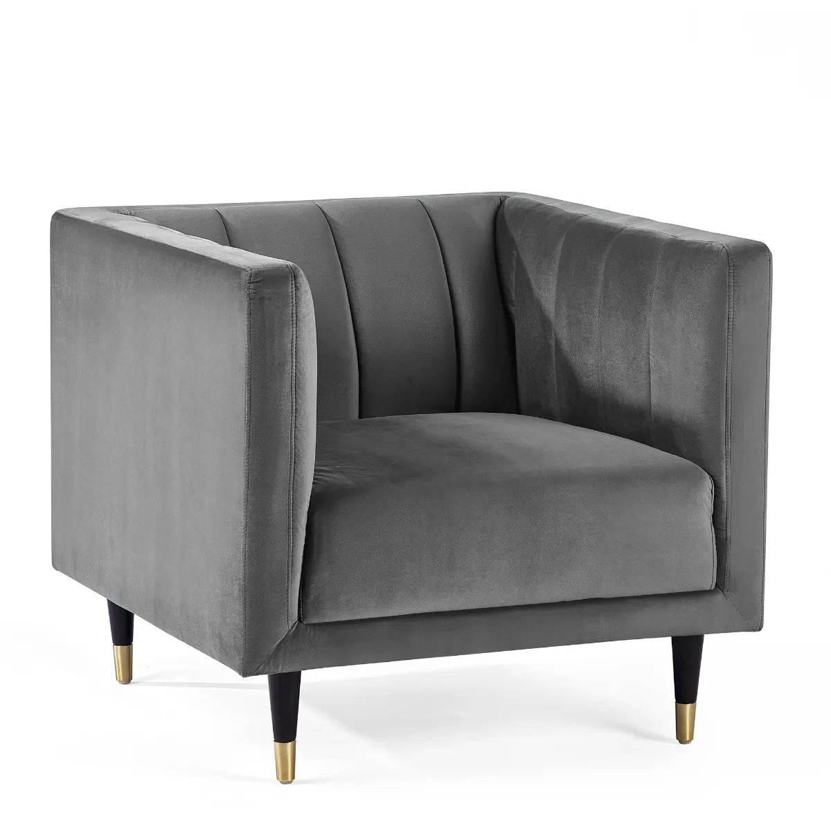 The Salma Sofa collection is a stylish and compact suite with a beautifully tailored velvet, scalloped back design, complemented by brass-tipped legs. The clean and slick design and plush upholstery make for a comfortable sofa that is the focal point of any living space.