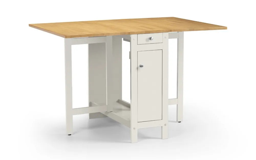 - A great space-saving alternative to a traditional dining set, with four fold-away chairs that store inside the table.