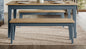 The Signature Blue Dining Bench features meticulous craftsmanship in the hand-finishing process. The oak parquet top undergoes a delicate distressing, followed by the application of a thin layer of white paint that is meticulously hand-rubbed back. The final touch involves a resilient clear lacquer, resulting in a breathtaking and durable appearance.