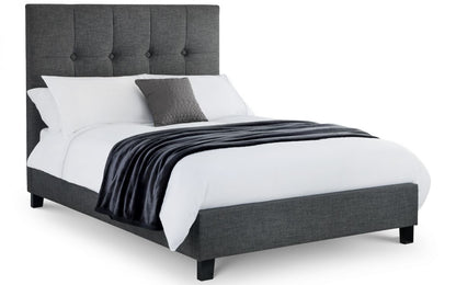 Sorrento is a stunning fabric bed, beautifully upholstered in a sophisticated slate grey linen fabric. A contemporary high headboard with immaculately finished diamond shaped feature buttoning makes an impressive style statement. A sprung slatted base ensures a good night's sleep and a prolonged mattress life. Sorrento is the perfect combination of stylish design and quality and offers fantastic value for money.