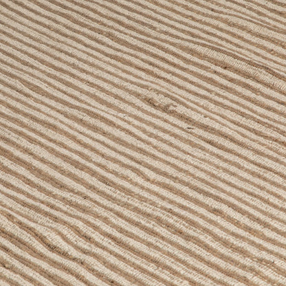 This striped rug is made of 50% jute and 50% wool, making it a gorgeous mix of natural fibres. Jute and wool are one of the most durable and sustainable fibres you can find in homeware, it's neutral and earthy tones make it easy to style. It is very hardwearing, making it perfect for a hallway or anywhere with higher footfall.