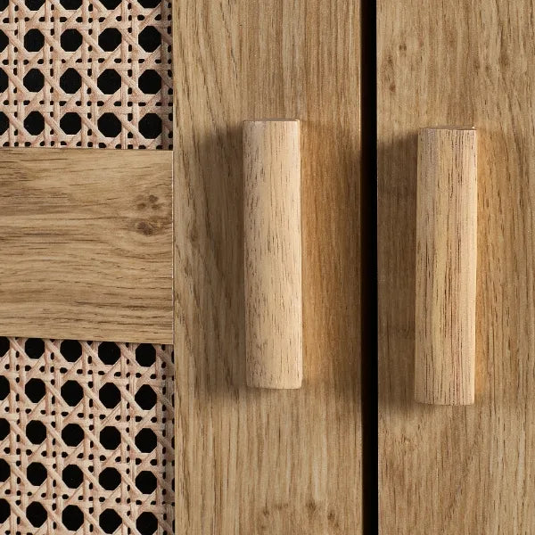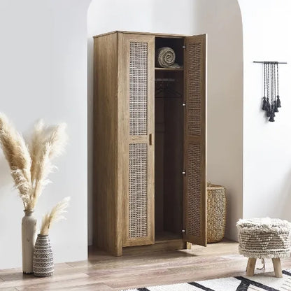 A beautifully sleek design with a bohemian feel, the Sydney 2-Door Wardrobe offers exquisitely curved edging accompanied by a raised lip around the edge providing a practical addition, stunningly combined with a rattan-effect sticker front.