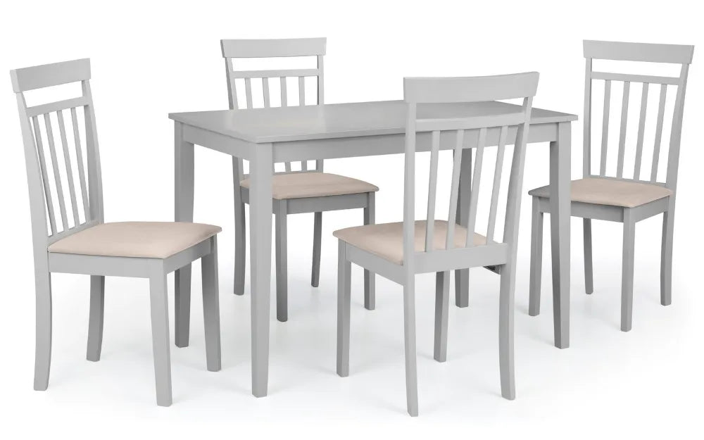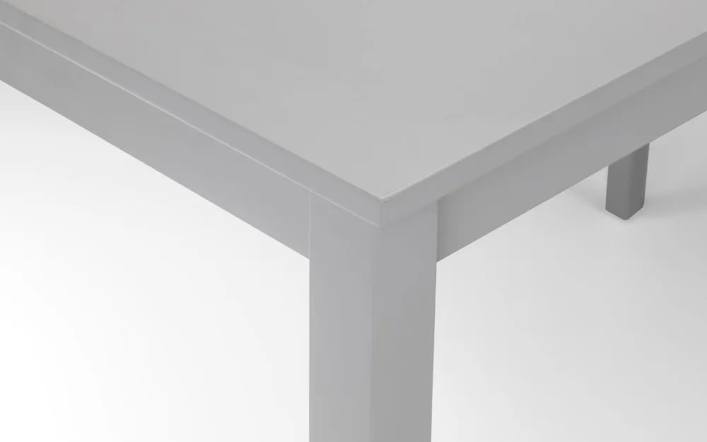 - A compact 4-place setting design in a durable Grey lacquered finish.