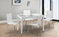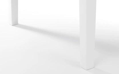 - A compact 4-place setting design in durable Satin White lacquered finish.