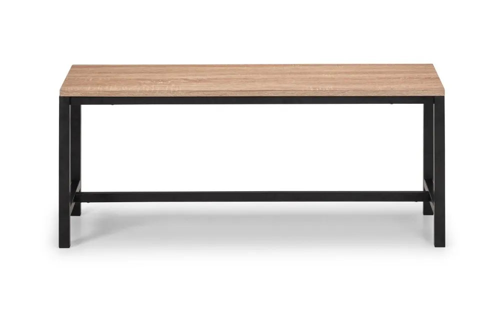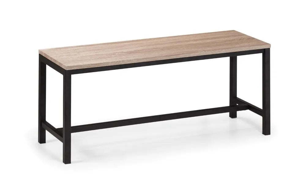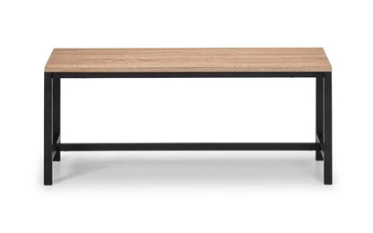 A cool, modern dining bench designed to add a contemporary touch to any dining space. Its simple clean lines, delineated by a subtle, black-coated metal frame are complemented perfectly by a warm, Sonoma oak foil, to create a very stylish and sleek product. The perfect match for the Tribeca Dining Table, creating a modern atmosphere within your home.