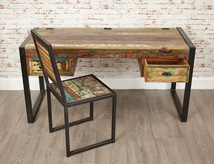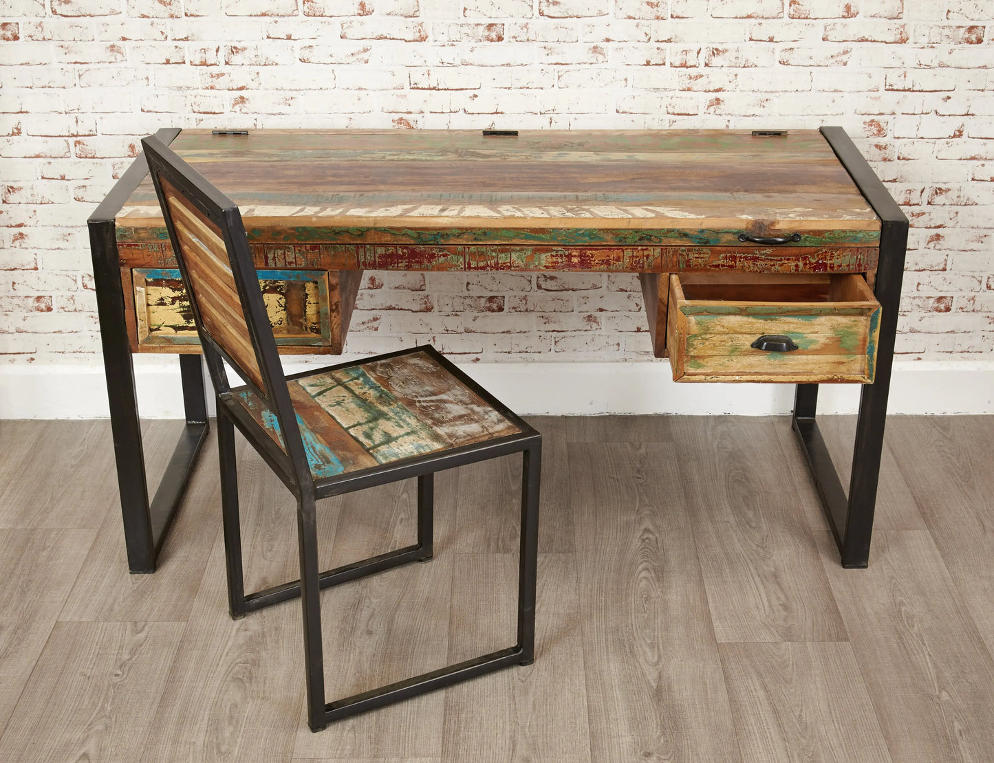 Discover the Urban Chic Collection, crafted from reclaimed wood salvaged from regions like Gujarat, Maharashtra, and Rajasthan in India. The wood, aged between 50 and 150 years, is paired with dark steel frames to create a unique urban aesthetic.