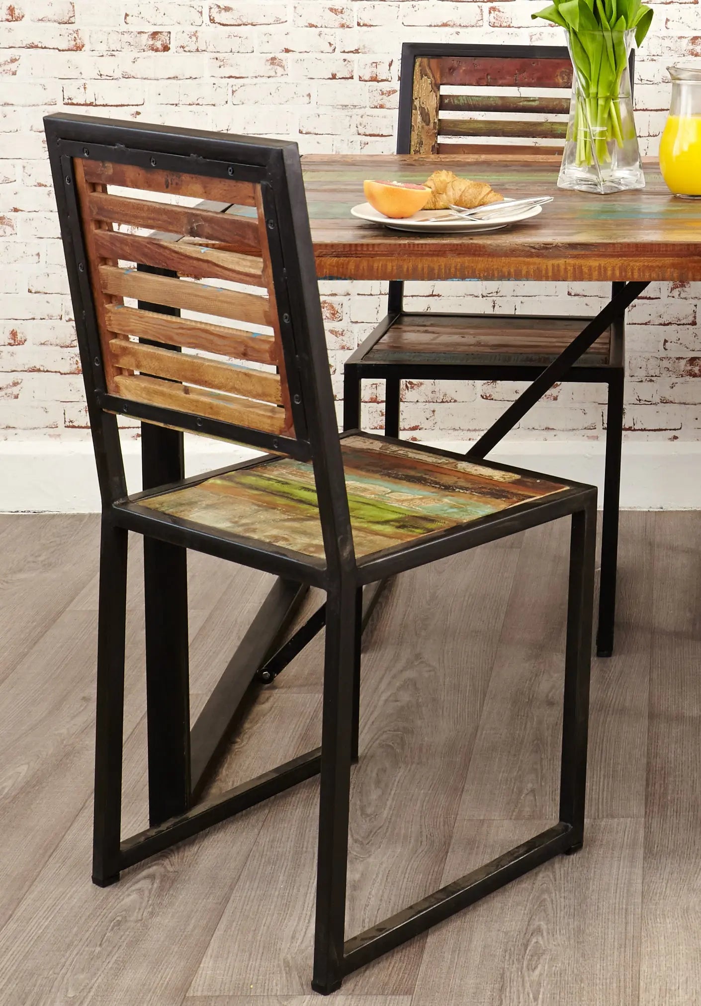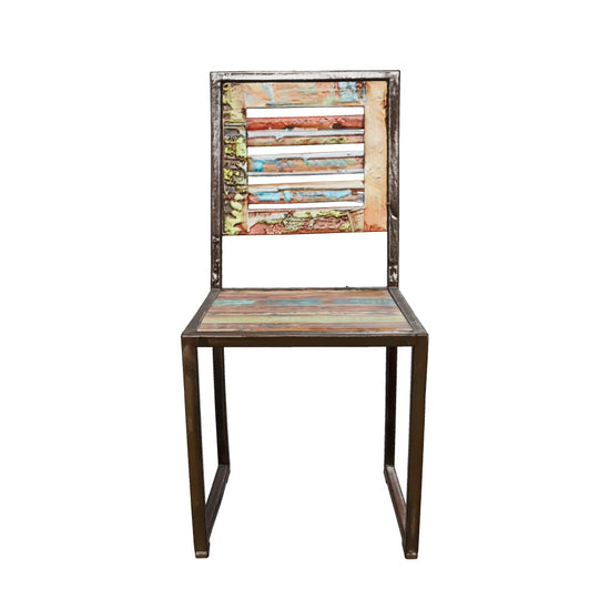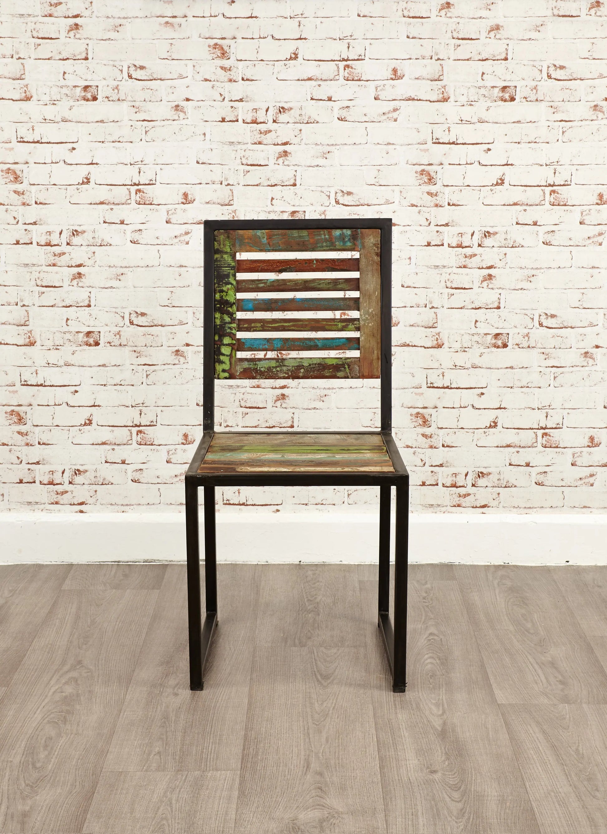 Elevate your dining experience with these stylish chairs from the Urban Chic range. Crafted from reclaimed wood sourced from Gujarat, Maharashtra, and Rajasthan in Southern India, these chairs each have their own unique story to tell - some using wood that is 50 to 150 years old. Meticulously hand-finished by skilled artisans and complemented by a sturdy steel frame, this furniture is a colorful and exciting addition to any home.