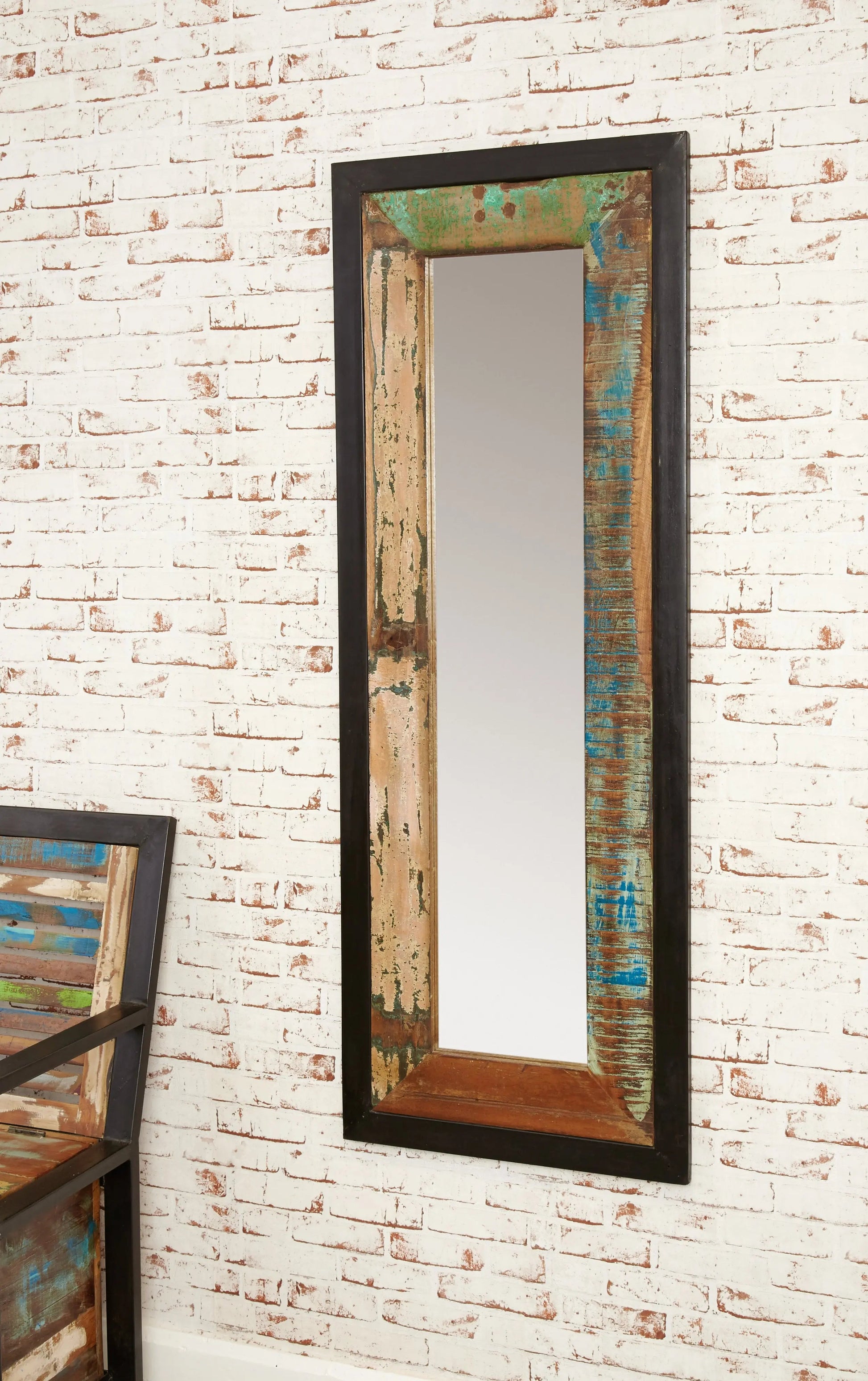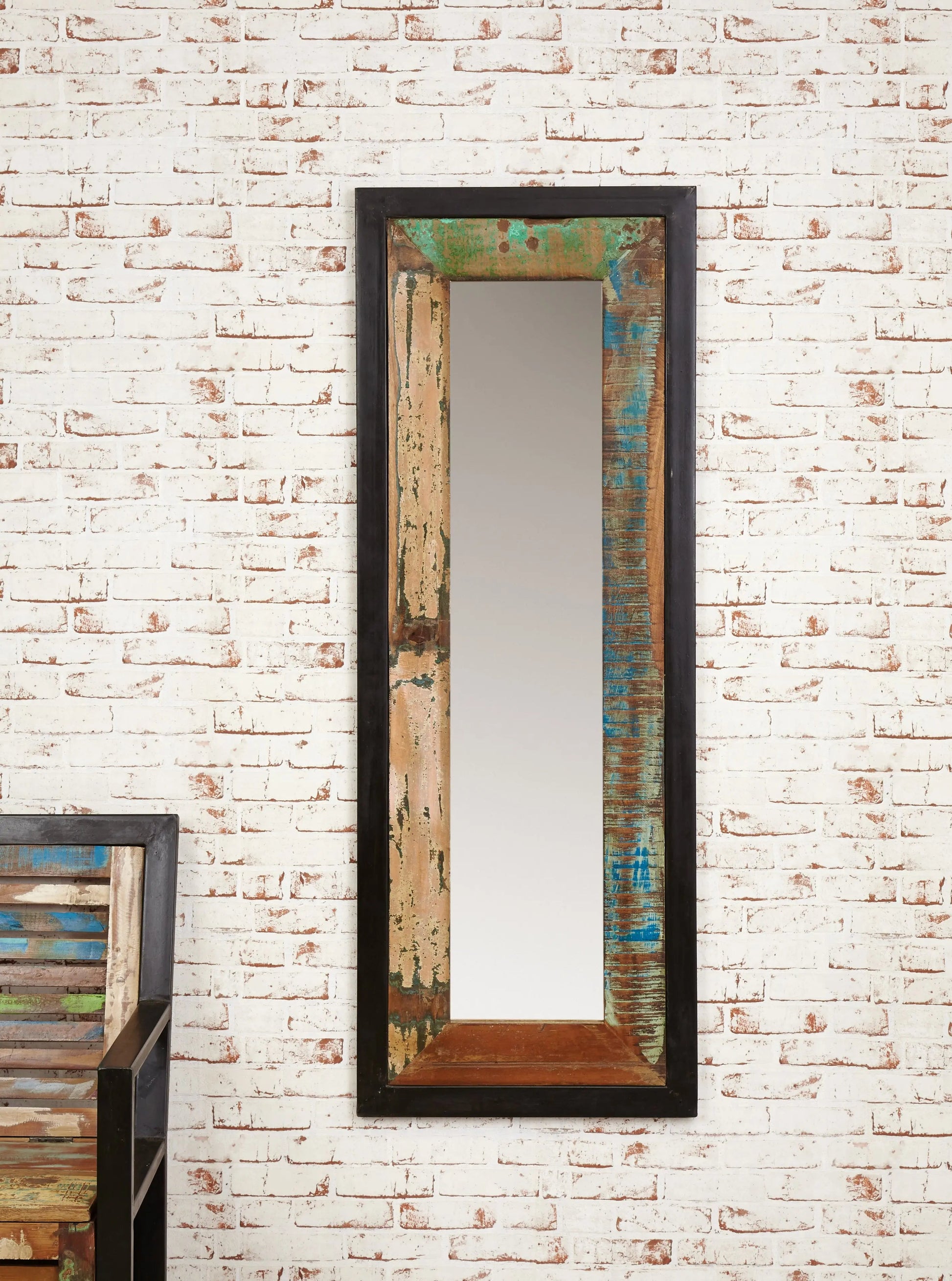 Elevate your space with the modern and exclusive Urban Chic Mirror Medium. Skilled craftsmen use reclaimed wood from Gujarat, Maharashtra, and Rajasthan Southern India, ranging from 50 to 150 years old, to create this vibrant and unique piece of furniture. Each mirror is hand-finished with a blend of reclaimed timbers, making it truly one-of-a-kind. Hang it either landscape or portrait style for a perfect fit in any room.