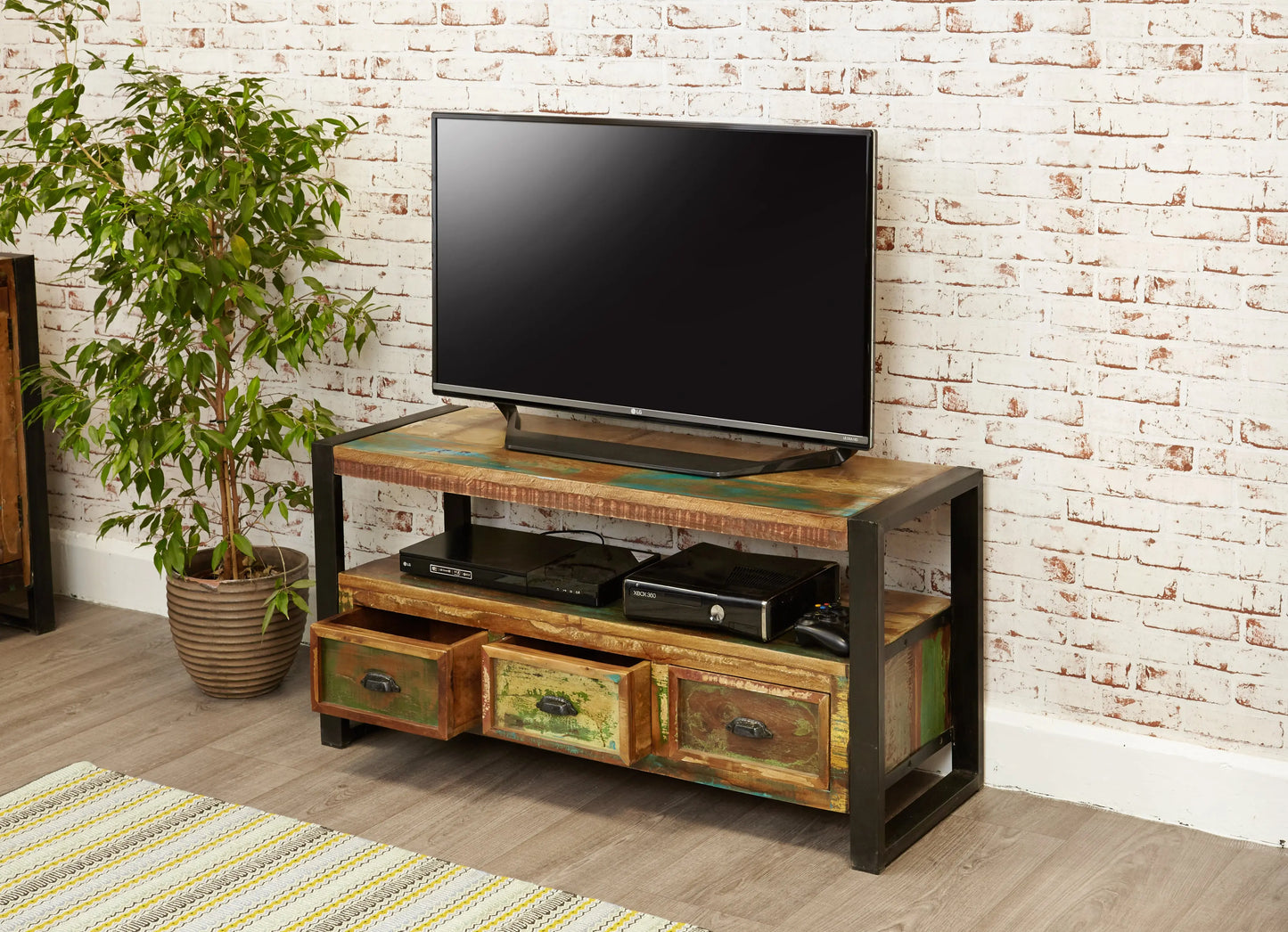 This unique contemporary widescreen television cabinet (up to 60") provides ample storage for ancillary units such as DVD players and Sky boxes with its designed shelf. Additionally, the three drawers offer practical storage for DVDs and the ability to conceal remote controls and extra cables.