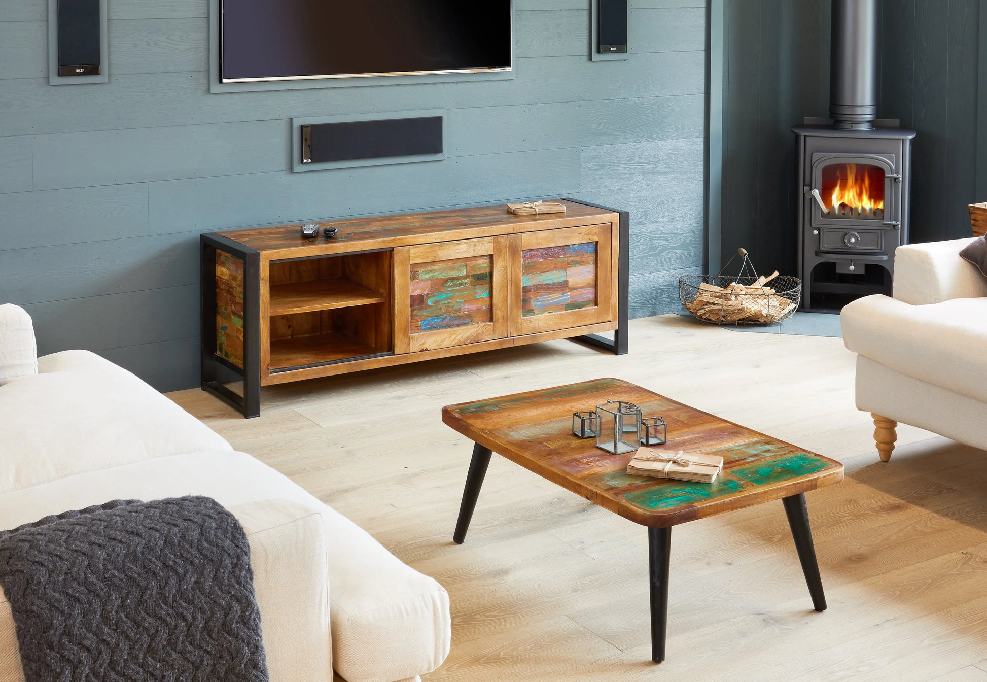 Discover the Urban Chic Collection, crafted from reclaimed wood salvaged from regions like Gujarat, Maharashtra, and Rajasthan in India. The wood, aged between 50 and 150 years, is paired with dark steel frames to create a unique urban aesthetic.