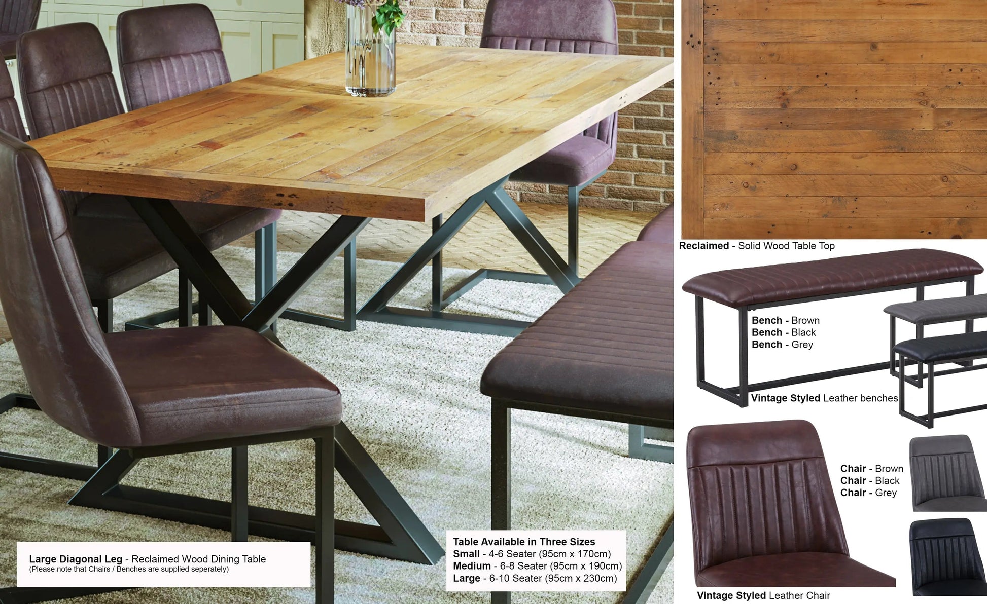Urban Elegance - Reclaimed Table LARGE (Diagonal Leg / 95cm x 230cm top) 6-10 Seater