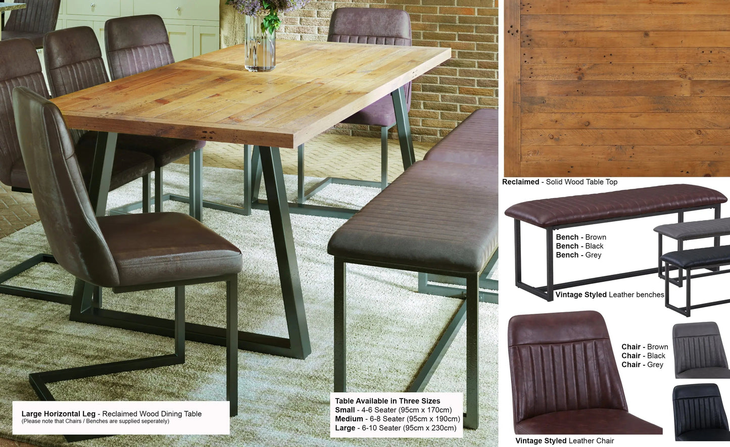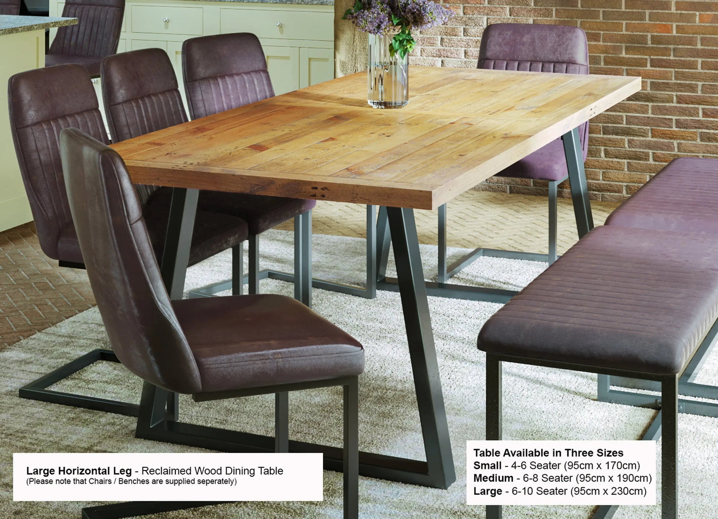 Urban Elegance - Reclaimed Table LARGE (Horizontal Leg / 95cm x 230cm top) 6-10 seater