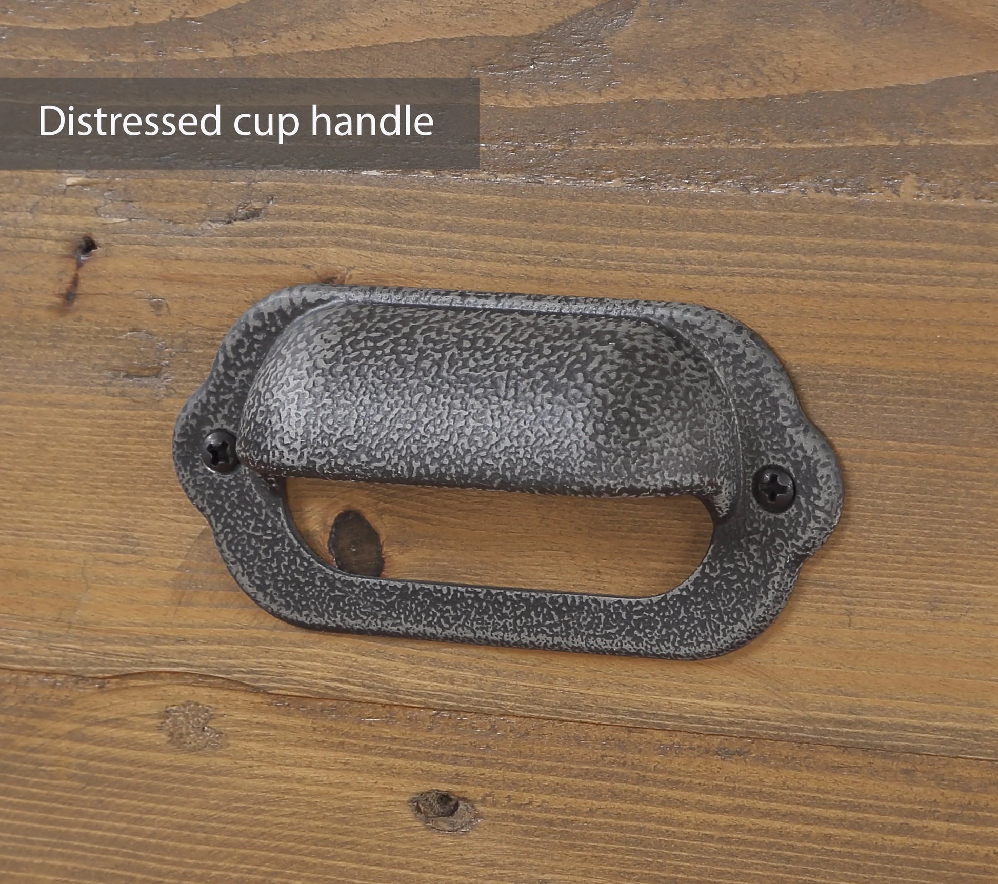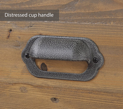 The distressed, powder-coated steel frame ensures an attractive matt finish, which combines beautifully with the solid reclaimed rough-sawn wood. Featuring a stylish cross design in the frame, these pieces will be a focal point in any room.