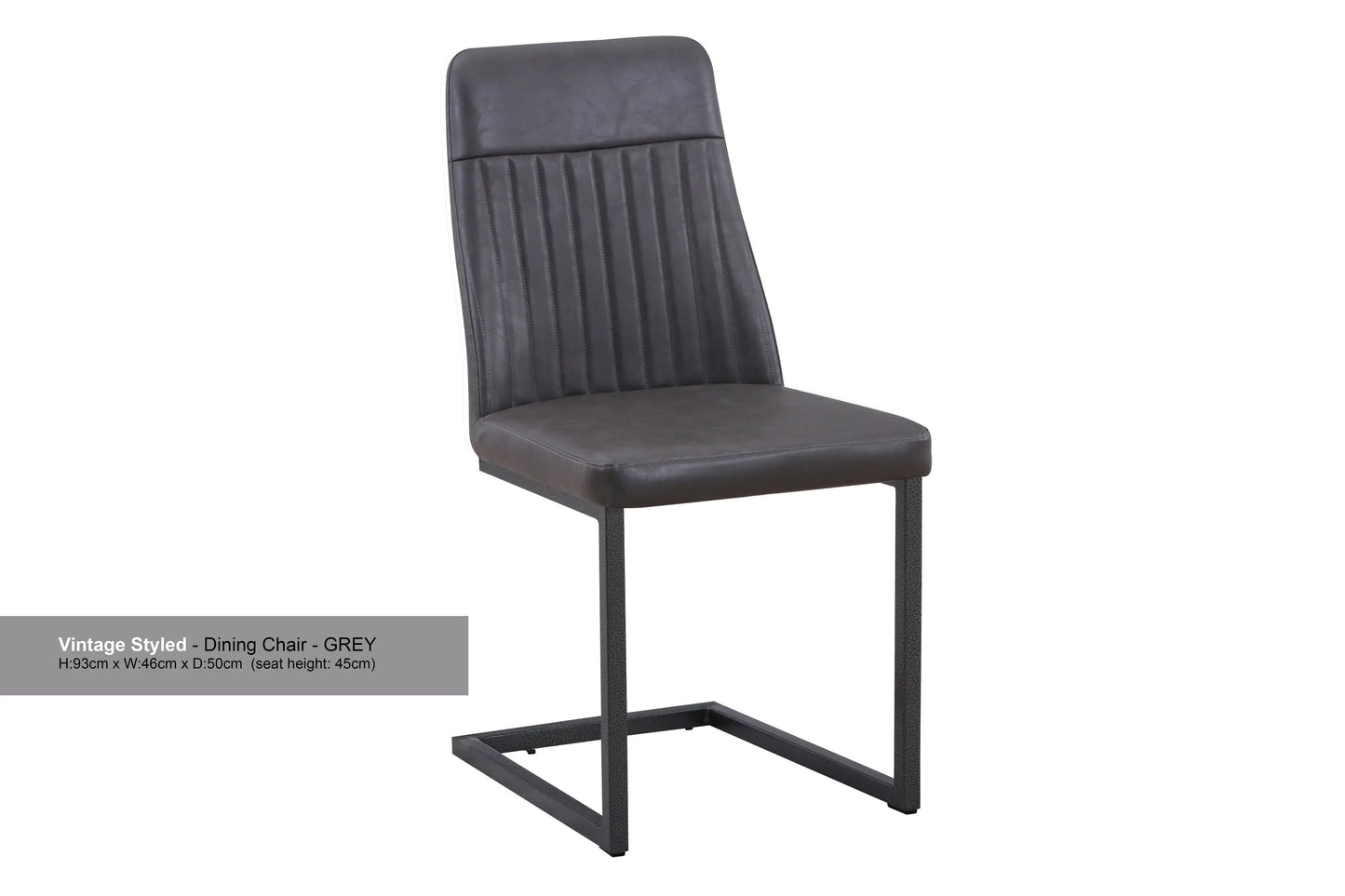 Vintage Grey Leather Dining Chair (Pack of Two)