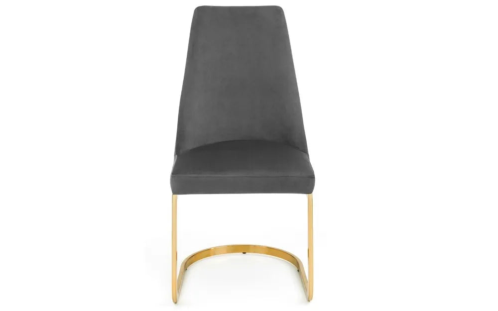 The Vittoria Cantilever chair brings sophistication and class to your home. With a golden U-shaped base and elegant velvet upholstery – this chair provides a classic touch to any dining area. The solid metal base adds great stability whilst the high backrests are supportive and comfortable. Available in grey or blue.
